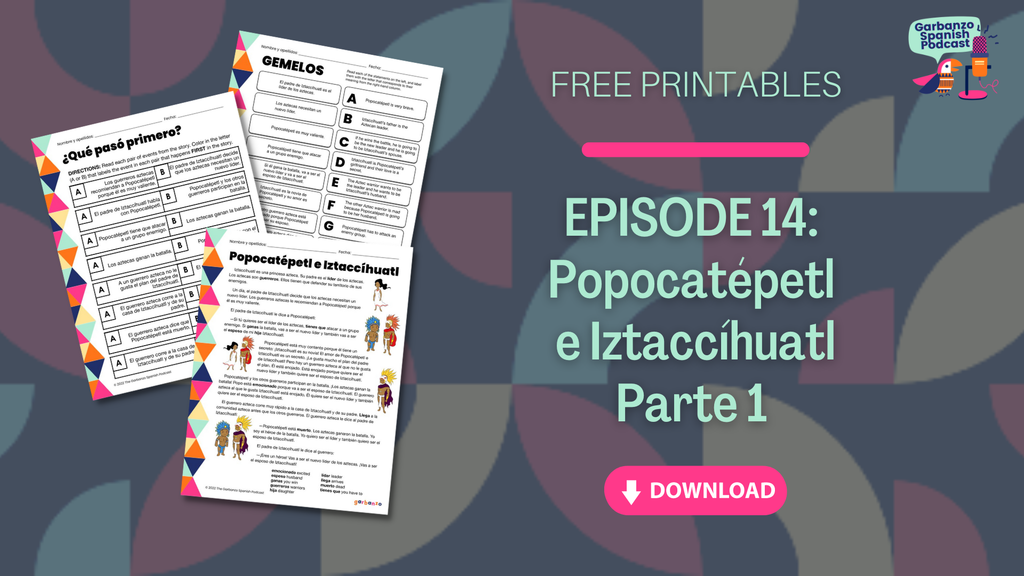 The leader of the Aztecs has a plan to find a husband for his daughter and a new leader to replace him, but not everyone agrees on who that should be! Listen to this story to find out if love can find a way! This episode is based on the simplest version of Popocatépetl e Iztaccíhuatl available on Garbanzo and is told by Nelly Andrade Hughes. This episode comes from Somos 1 Unit 5.