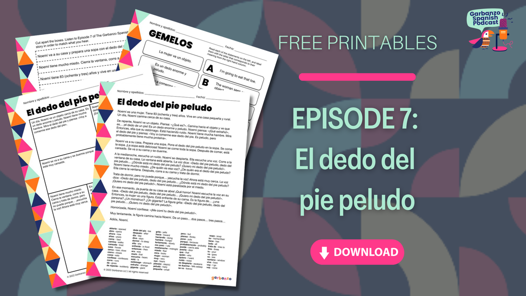 This story is sure to freak you out! Episode Seven of the Garbanzo Spanish podcast is a spooky story for the fall, and it uses more complex language than the previous episodes in Season One. Listen and see how much of this story you can understand, and we’ll return to super simple stories in Spanish in Episode Eight. This episode features the dramatical talents of Paulino Brener. You don't want to miss his super-spooky performance! This episode most closely aligns with Somos 1 Units 9 and 10.